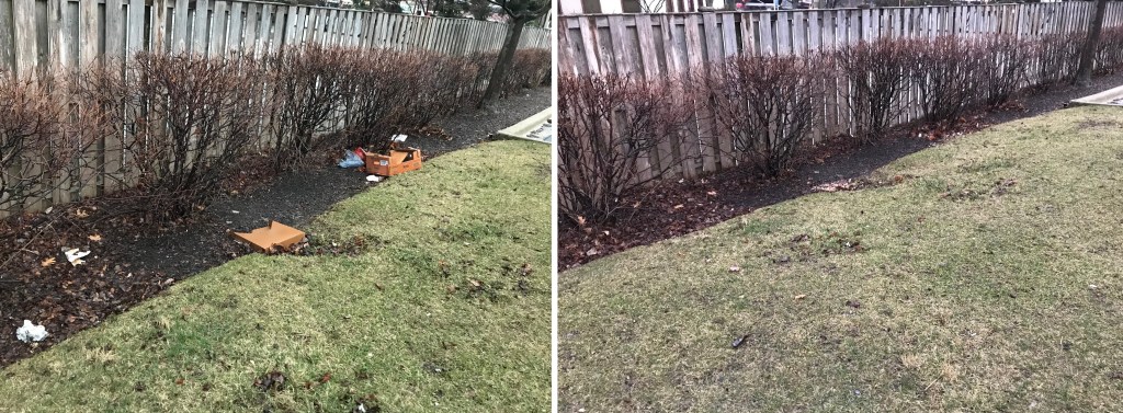 Pictures Examples of before and after litter cleanup service: Share this: Click to share on X (Opens in new window) X Click to share on Facebook (Opens in new window) Facebook